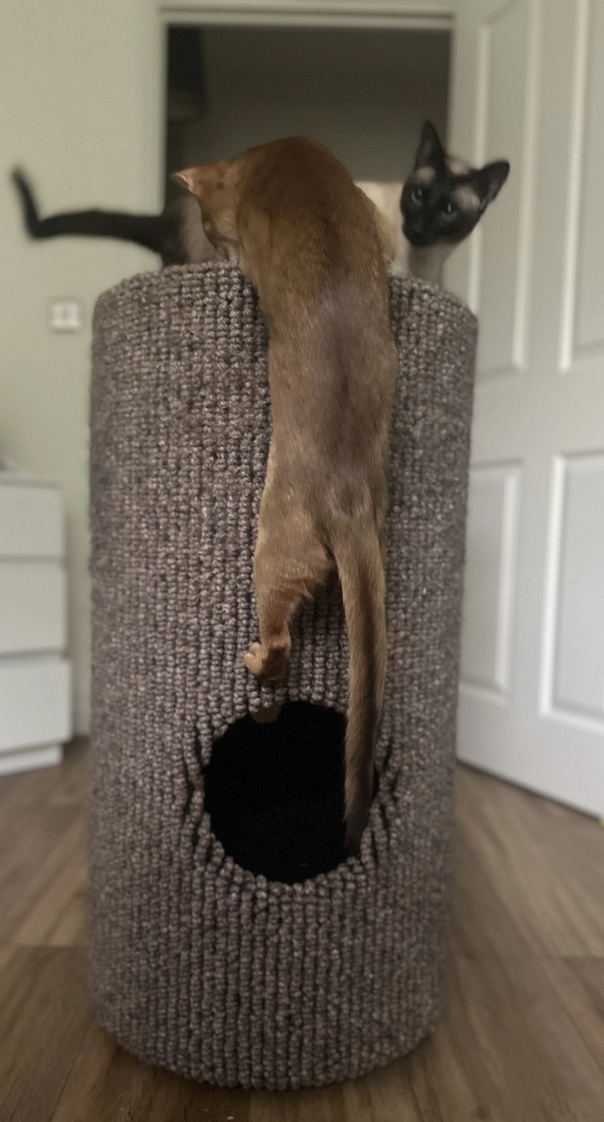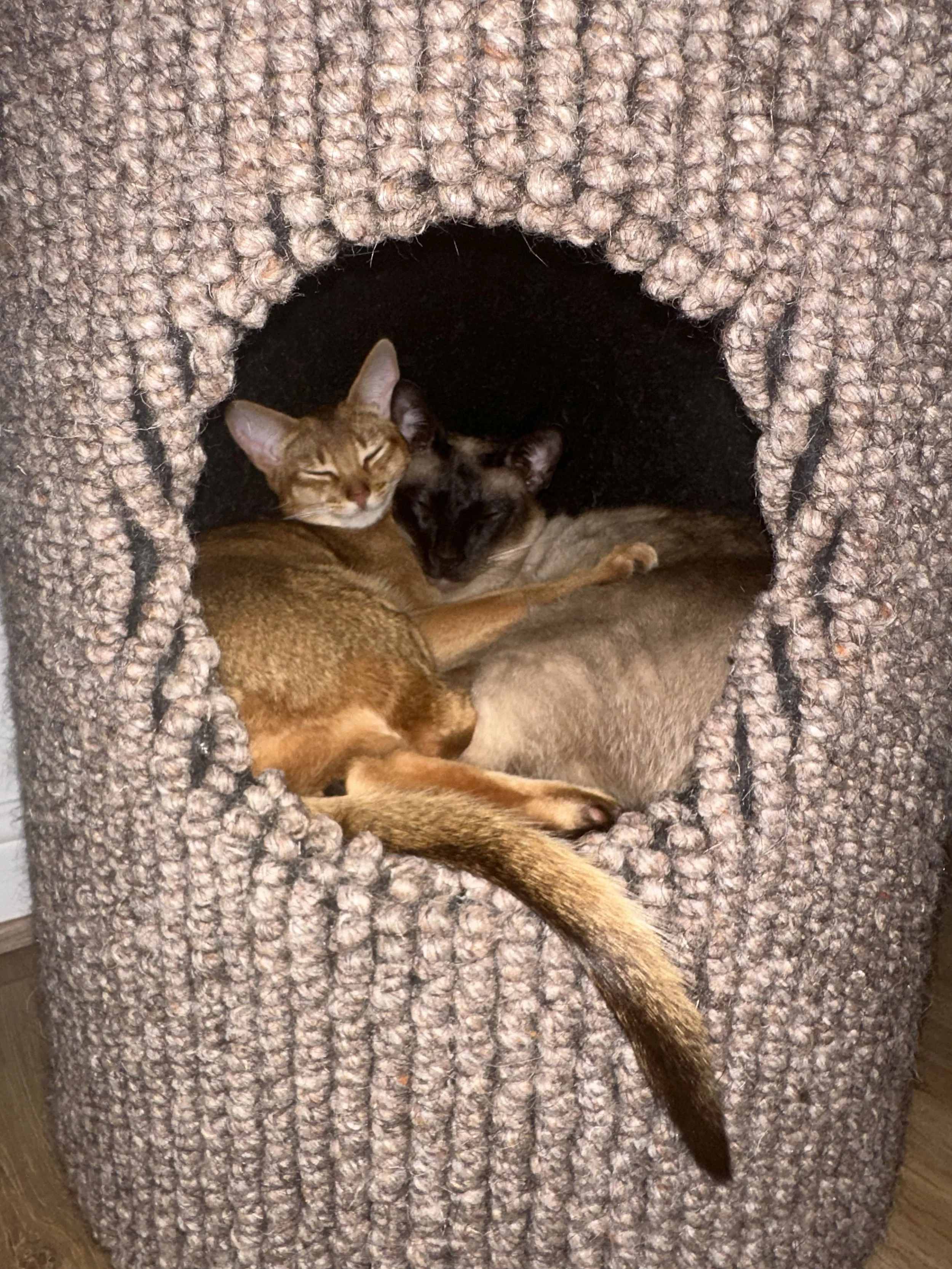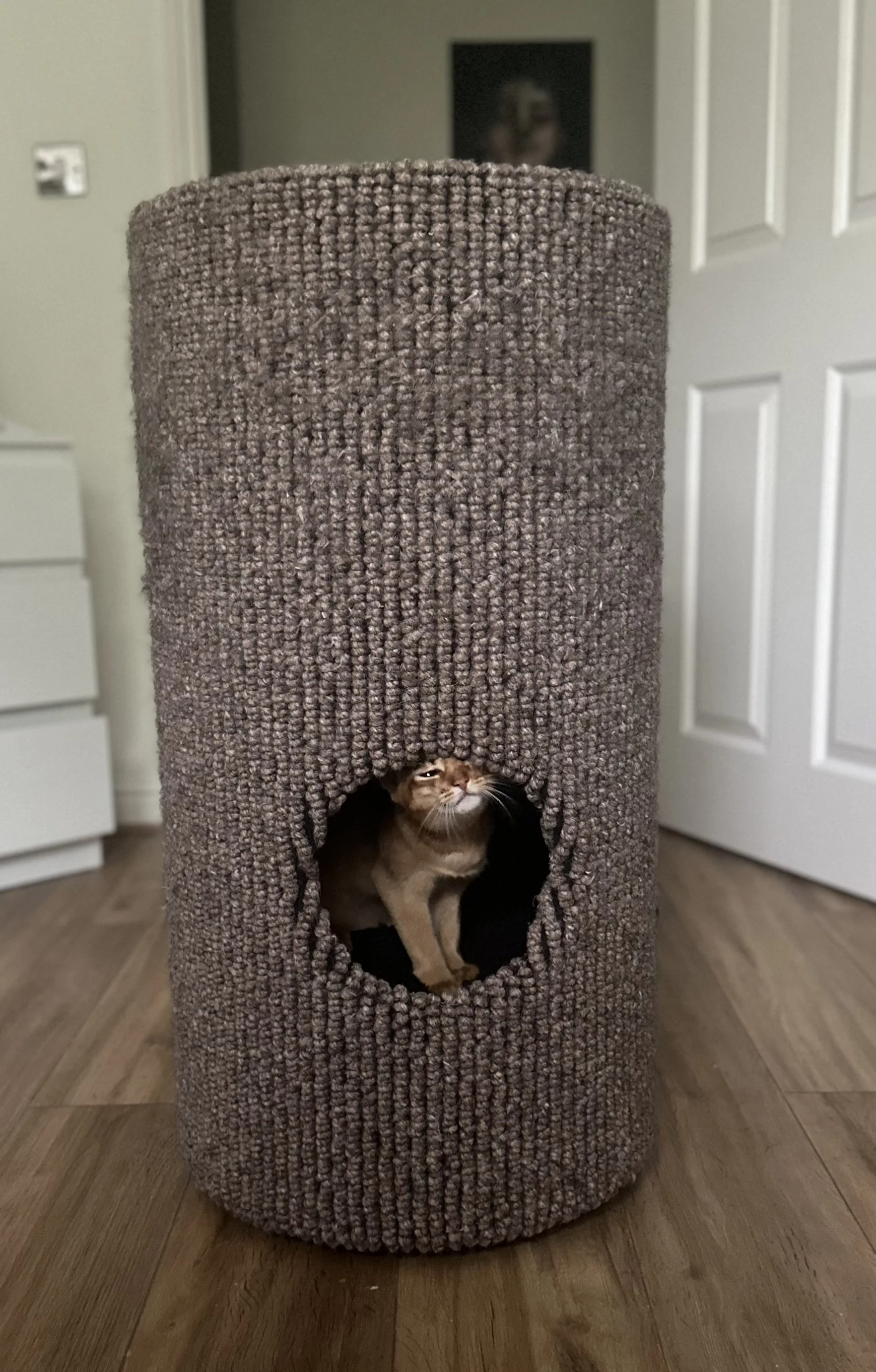 Julianne, the winner of the draw for Gerald’s Bobcat, has sent some photos of her cats enjoying their rehomed cat furniture - it’s been a month since Julianne collected the Bobcat from our studio so it hasn’t taken long for her cats Rosie & Samwise to make the most of it.