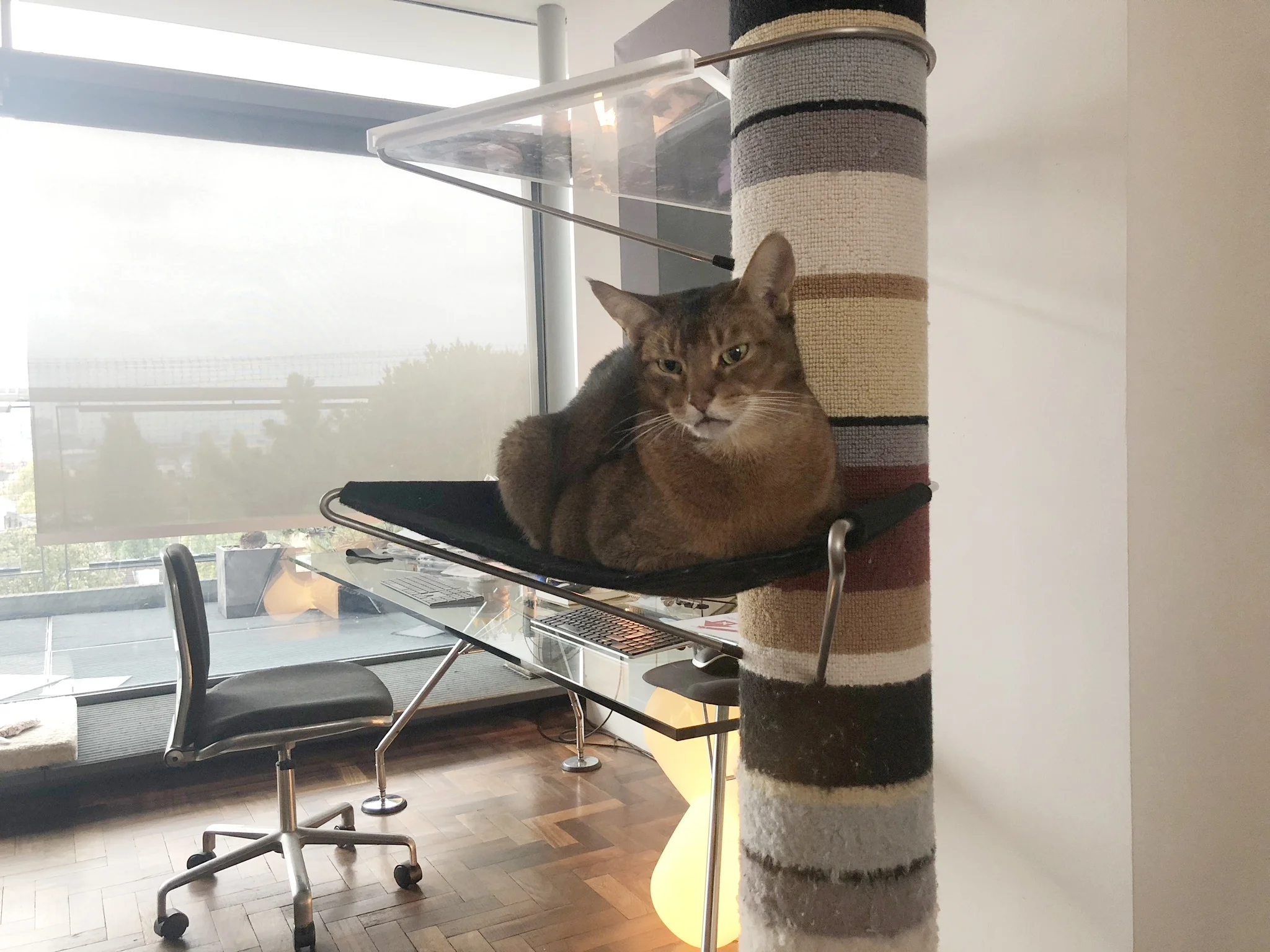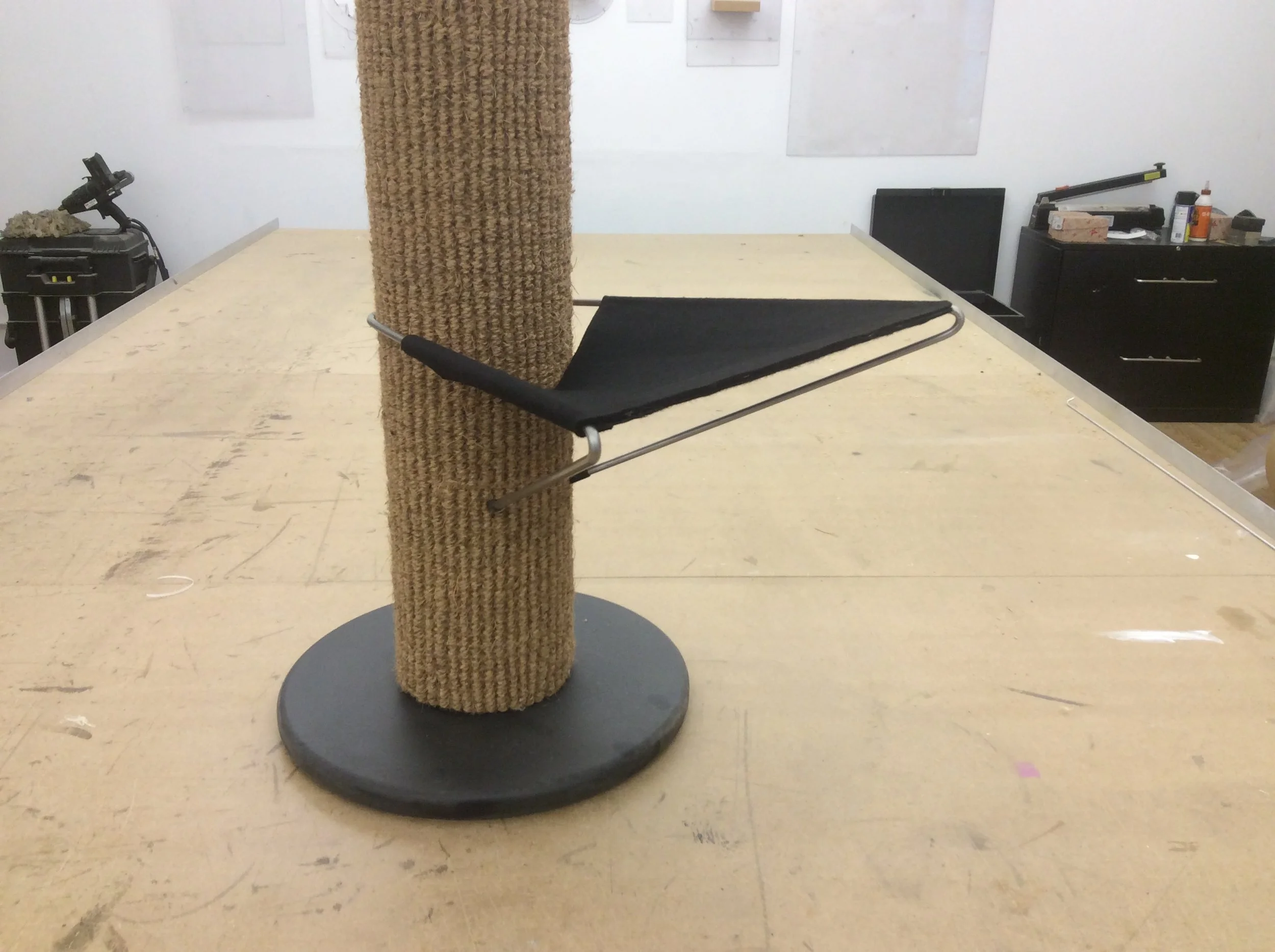 We (mainly our cat Bello) are currently testing a prototype soft seat that can be used with our existing Cat's Cradle frame - it's a much simpler design compared to the original prototype Cat’s Cradle & is made of felt with Velcro® fasteners as opposed to leather with pre-tensioned rope.