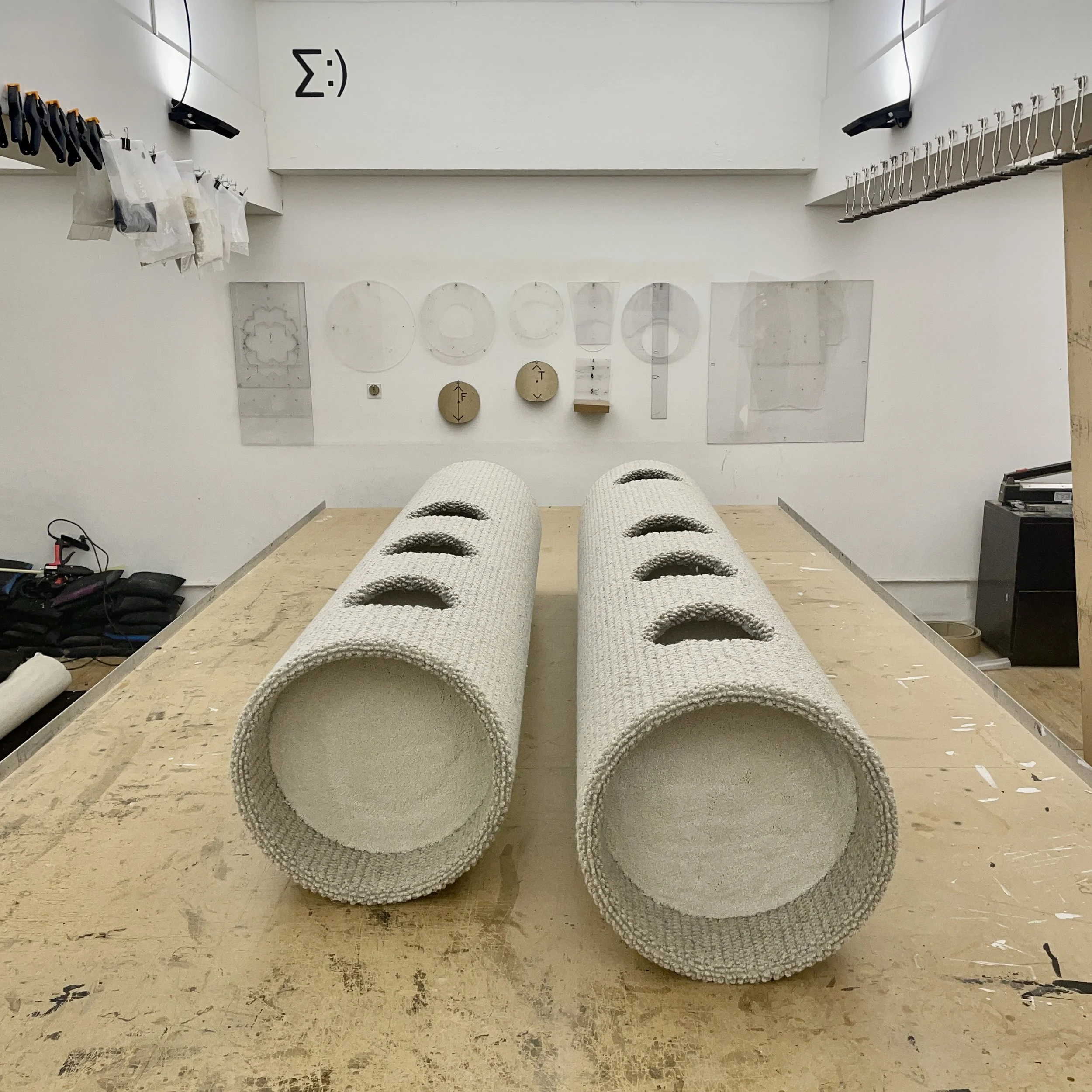 As shown on Instagram we’ve just fabricated two bespoke Freestanding Fatcat pieces finished in a Customers Own Material - Camille from London, UK wanted an un-dyed/untreated natural wool carpet so after researching the market she selected a finish from the Galloway range manufactured by Brockway & matched this against an off white coloured twist pile carpet range called Serenity Imperial that we have previously procured from Classis Carpets.