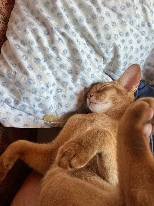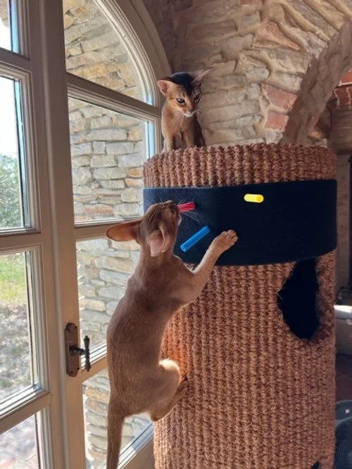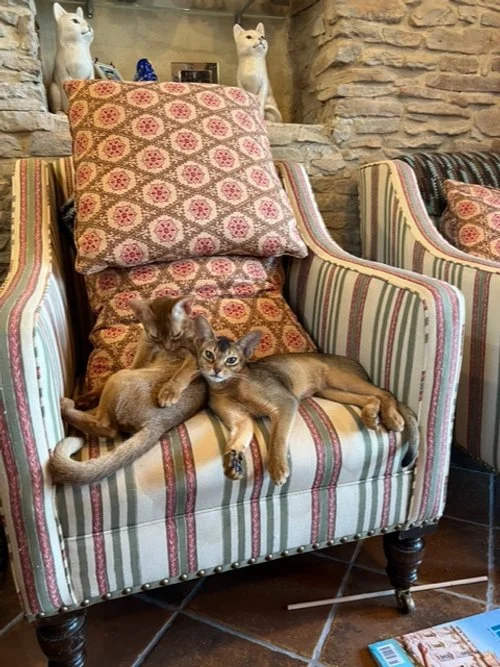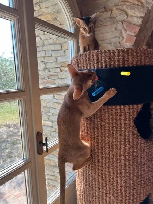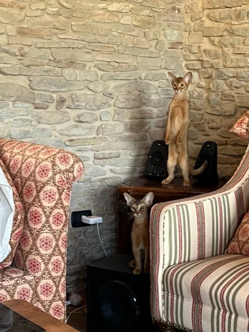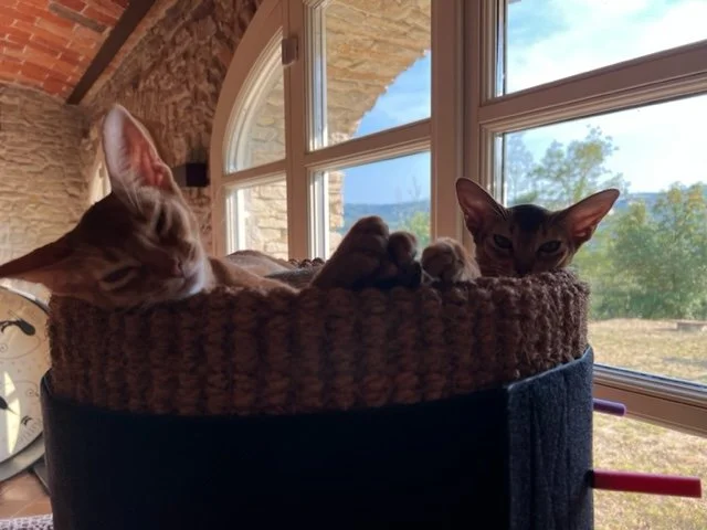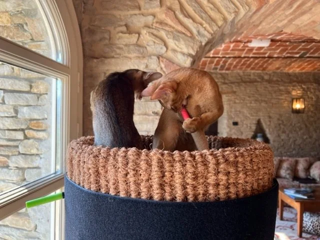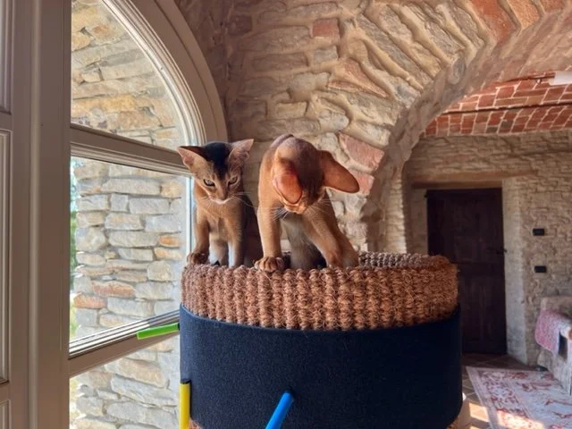 Valerie from Santo Stefano Belbo, Italy, is a returning customer of ours & recently shared some photos with us, which in turn we would like to share - the two Abyssinians are Desdamona & Zoya, two unwanted kittens that 6 weeks ago were in the middle of the Ukraine conflict in Odessa.