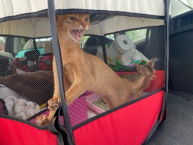 Martin, Valerie’s husband made a mercy dash to Warsaw to collect the sisters & they are now at home in their haven for cats - we say haven for cats as Desi & Zoya will hopefully be sharing their Freestanding Fatcat 3 with JJ a Bengal boy (naughty) who was looking for a home & adopted from Texas, Maggie a rescue cat from New York who was saved from being put down in 2014 (surrogate Mum to Desi & Zoya), Sammy was another on the NY list but in 2016, & Chloe, Greybie, Oscar, Ginger & newbie Charlie outdoor cats that Valerie & Martin look after but who are also part of this cosmopolitan cat family.