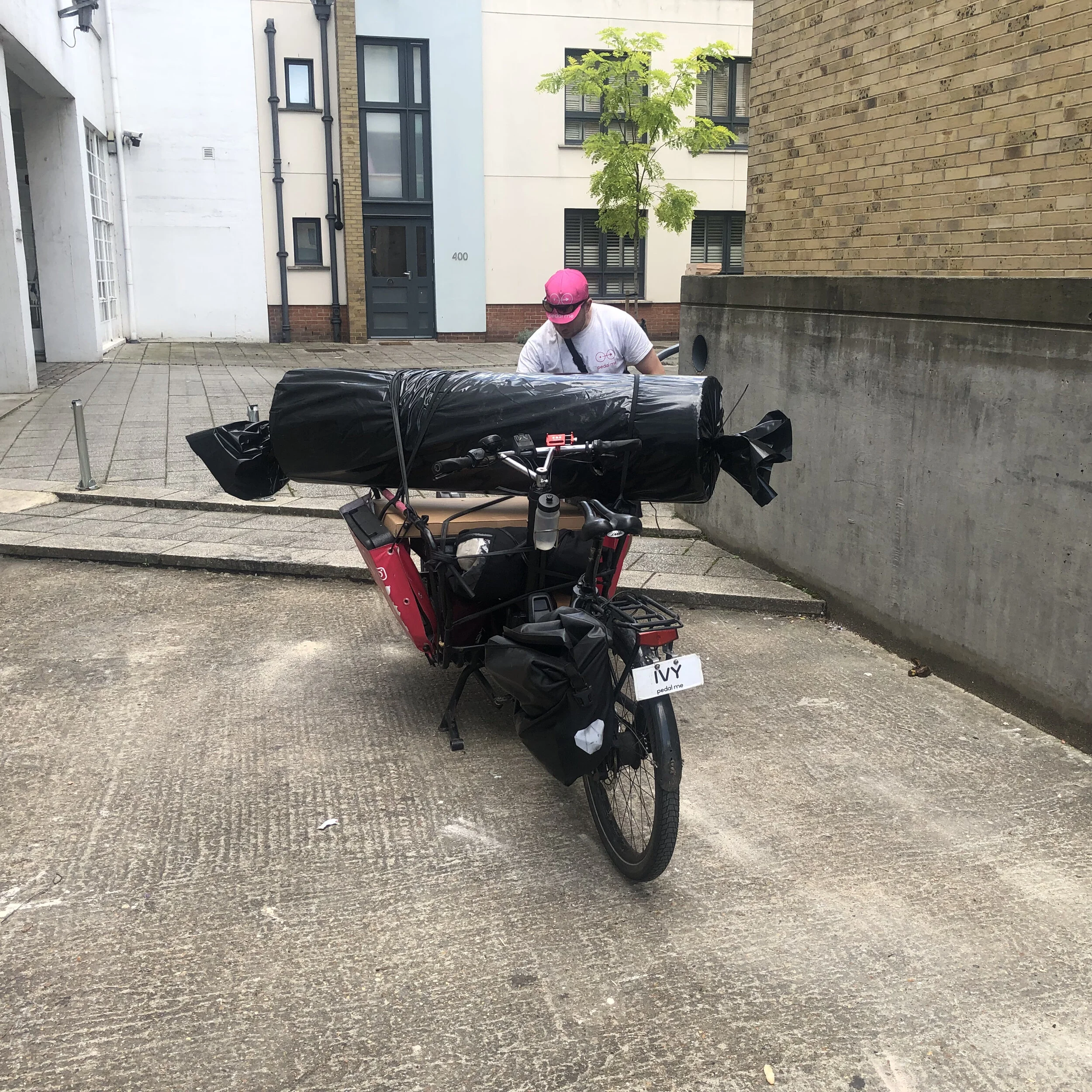 Most of our central London orders are still being delivered pedal power styli & nothing seems to be to cumbersome or big for these urban bikes - eyebrows were slightly raised watching this Fatcat get strapped to a Pedal Me Cargo until we found out that all of these bikes have a built in gyroscope that sorts out the balancing act & allows loads of up to 200kg to be safely transported.