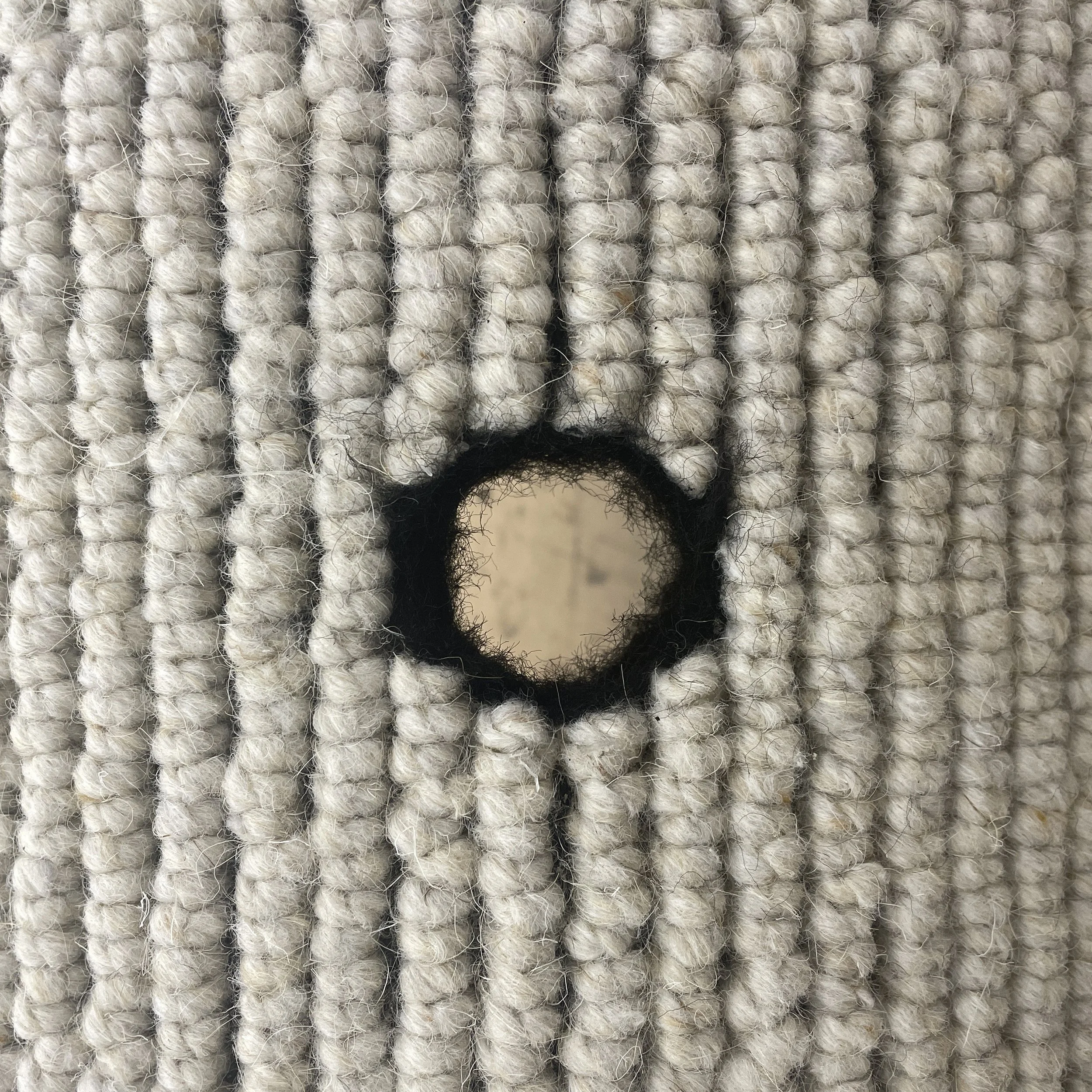 Peep Holes on AVM Wool units that had a black membrane between ribs like Moon, Iron & Tar, were being finished with our standard natural coloured hot melt glue so finishing these features required several layered attempts to get a dense looking build up of glue & fibres - we did fabricate a stock item that used just black hot melt glue to form the Peep Holes, which was an improvement but by adding black fibres to the glue whilst forming the hole gives a much softer & better finished hole to spy, pass treats or play through.