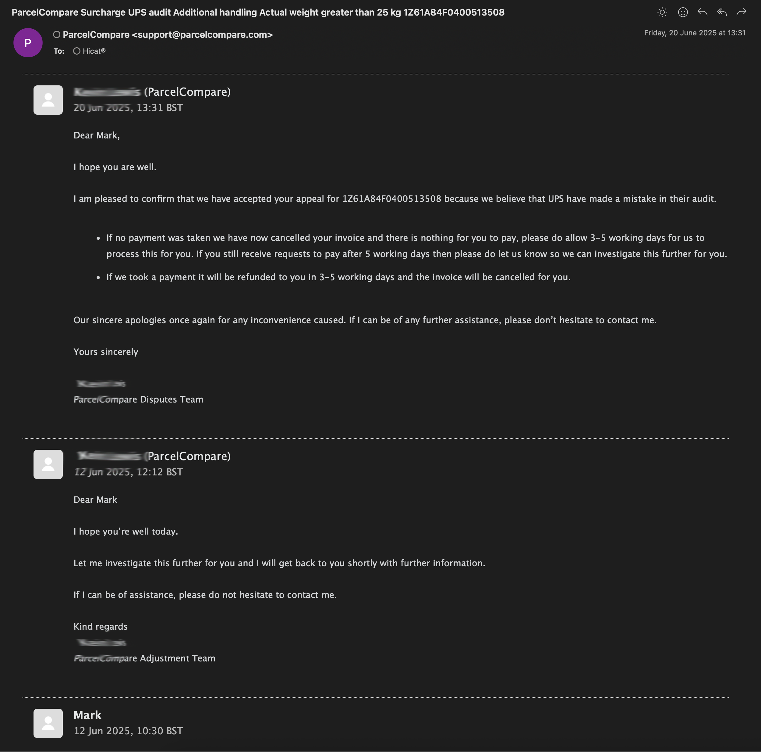 We realise this won’t be nice reading for customers who are thinking of making a purchase & who might be put off by these failings but we have not experienced this level of service failure before & hope that the flurry of recent problems represents our fair share of any future issues - we’ve already made the decision to stop using resellers like Parcel Compare for our shipments as we think that the commercial arrangements between these resellers & the courier companies is fundamentally part of the problem.