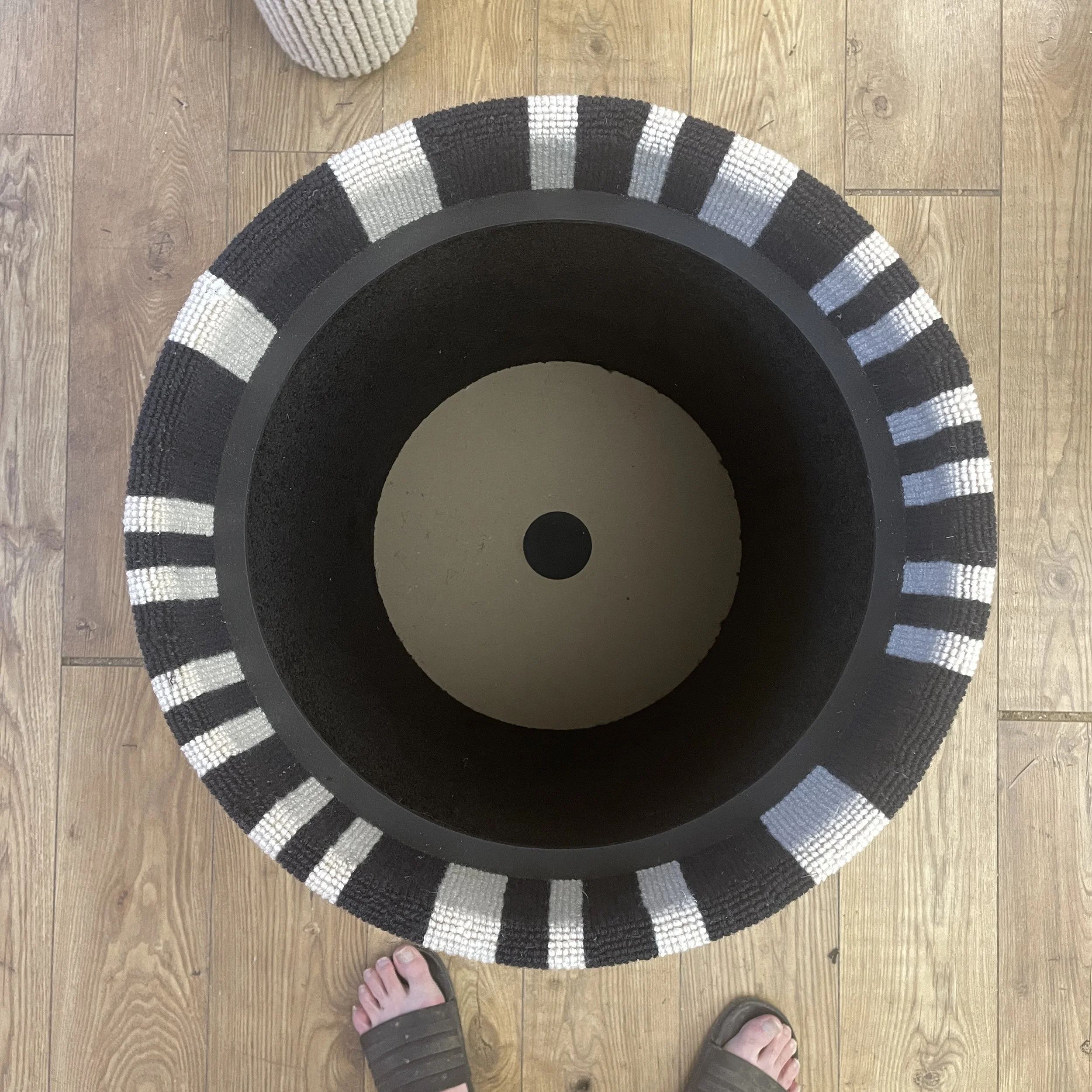 Our Storage Bobcat has recently been updated to include a similar ballast filling hole to our MKII SixToo™ - the unit shown is finished in Crucial Trading Audrey Midnight Wool & is a 760mm tall 480mm diameter XL version of the Storage Bobcat.