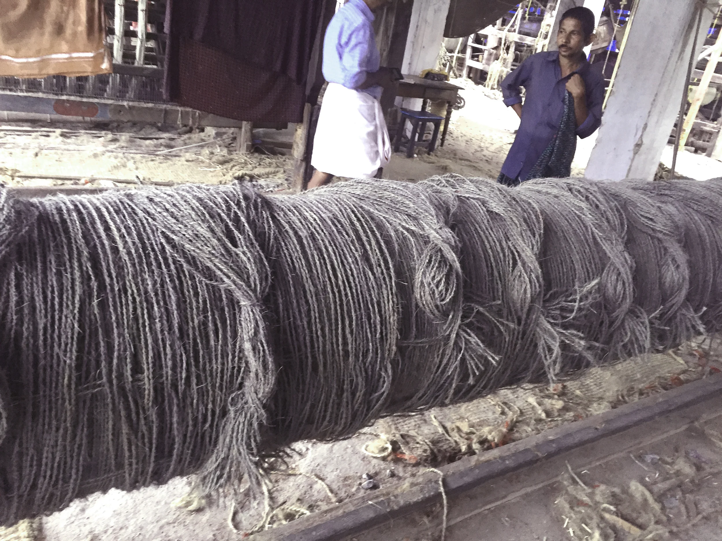 Concrete Coir update showing our special finish yarn coming off the loom in Deli, India.