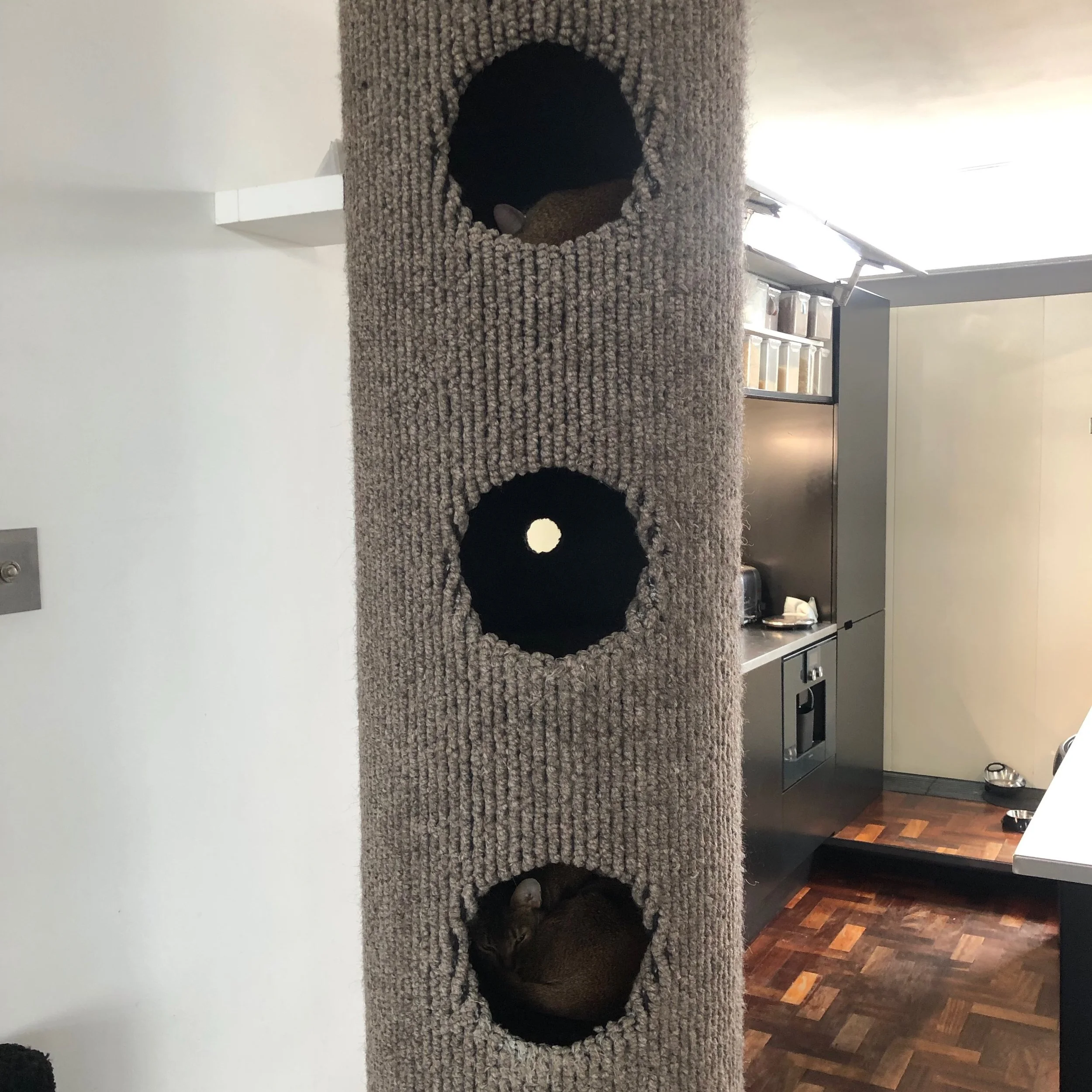 Bill, a Hicat customer based in Edinburgh used the natural off cut that was up for grabs to create a very impressive looking scratching stool to compliment his Fatcat & Polecat.