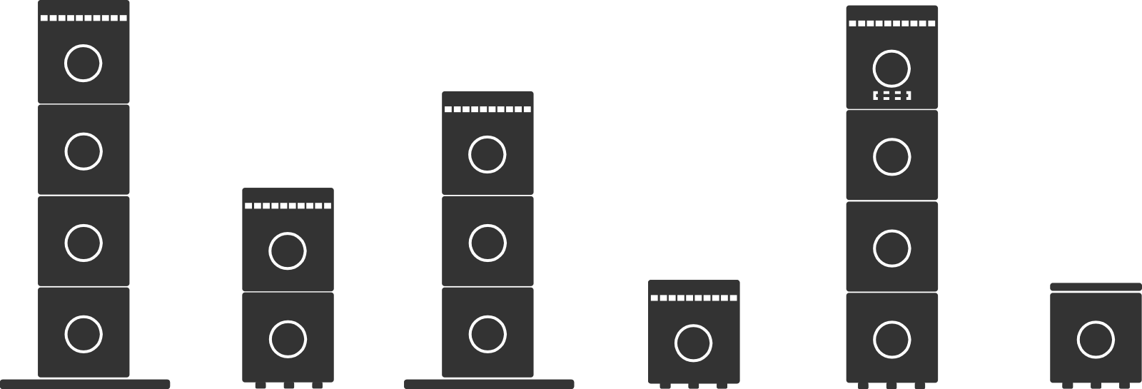 Units can be stacked up to four high when mounted on a Base or used as single or two high freestanding unit without a Base - there's also a Wall Mounting Kit that that can be used instead of a Base.
