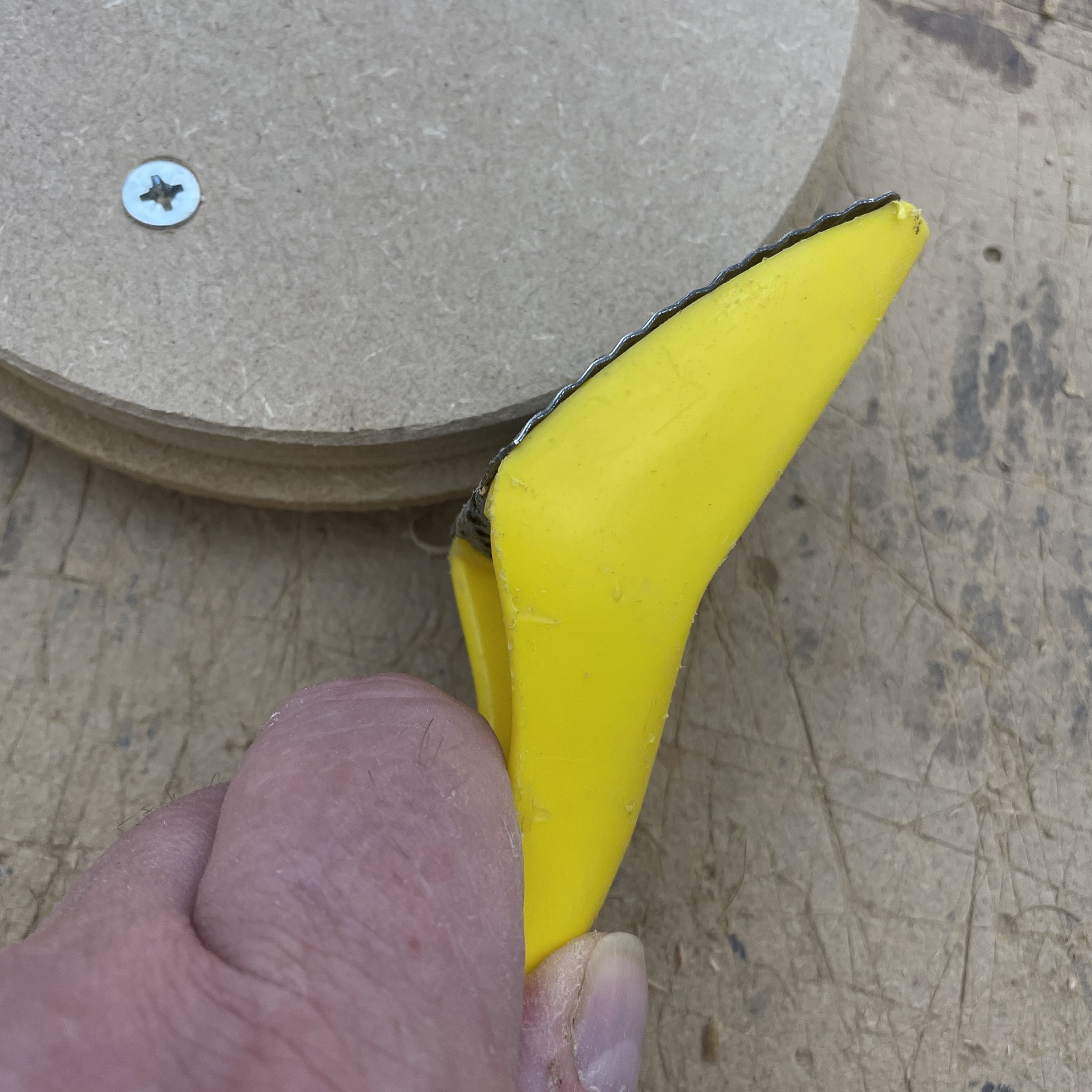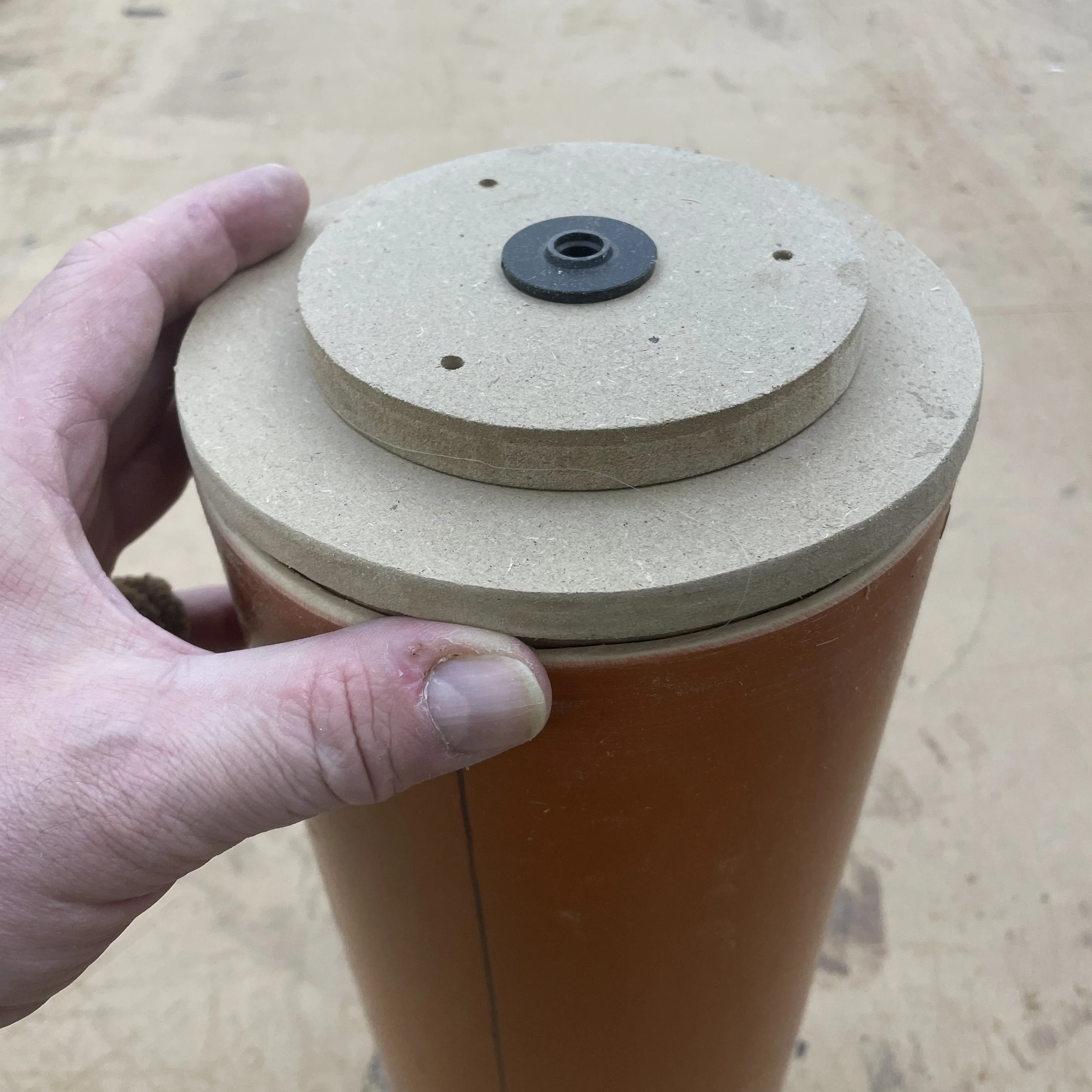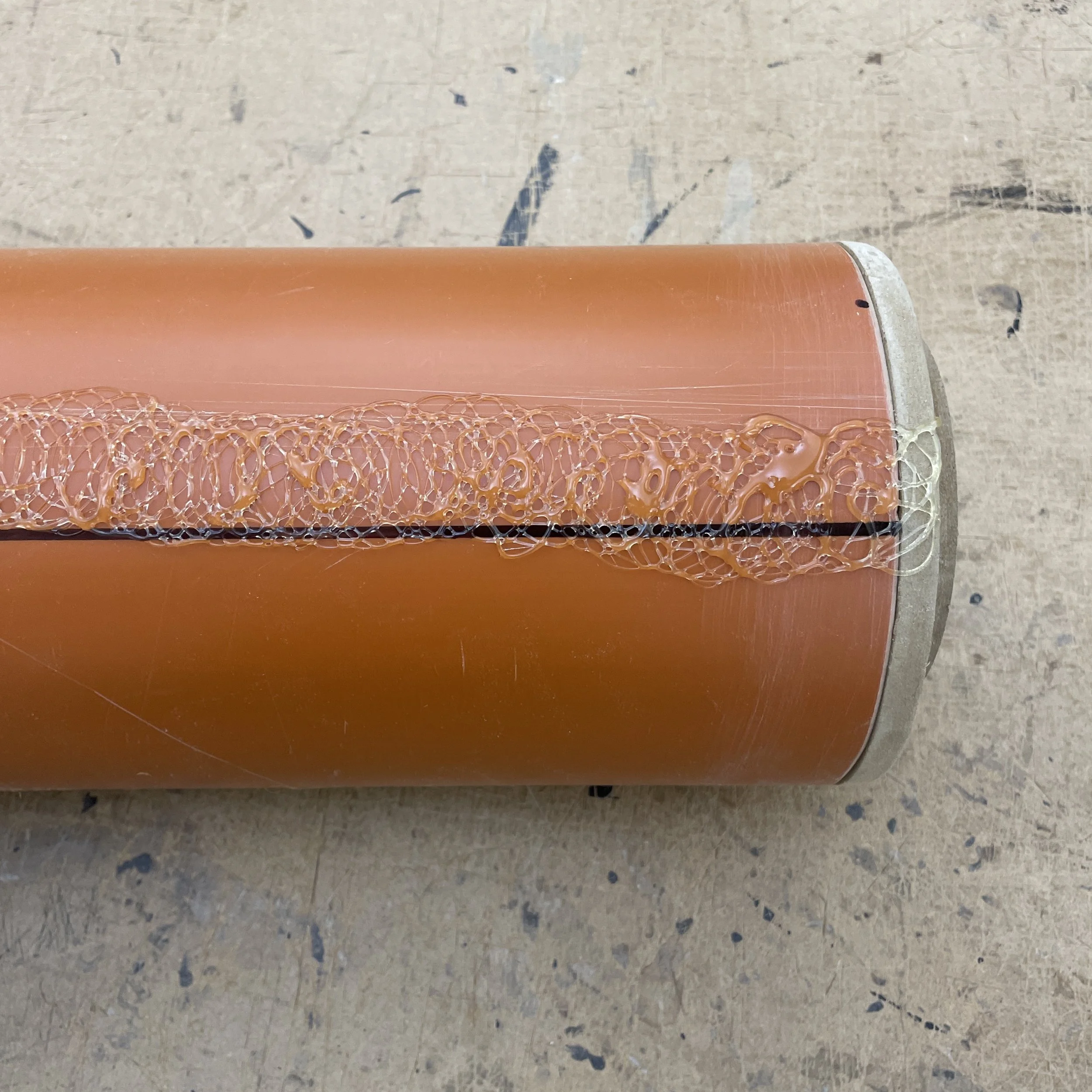 We use clamps at this stage to hold the carpet seam together while working the carpet around the tube & then leave the unit overnight for the glue to cure - it’s unlikely that you will have clamps so you’ll need to continue pulling & wrapping the carpet as noted in the previous stage until the carpet has bonded enough to move onto the next step, which should take around 20 minutes or so.