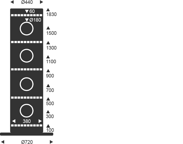 To create this freestanding unit we had to develop an internal mounting collar that is concealed in the bottom of the Hicat® & this construction gives the unit the strength to turn it in to a free-standing structure when secured to its 720mm diameter base.