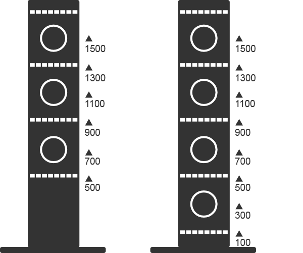 Compartments are shown in their recommended configuration based on unit type but these can customised in position at a minimum of 300mm centres from the top or bottom of the unit & centred at a minimum of 400mm apart.