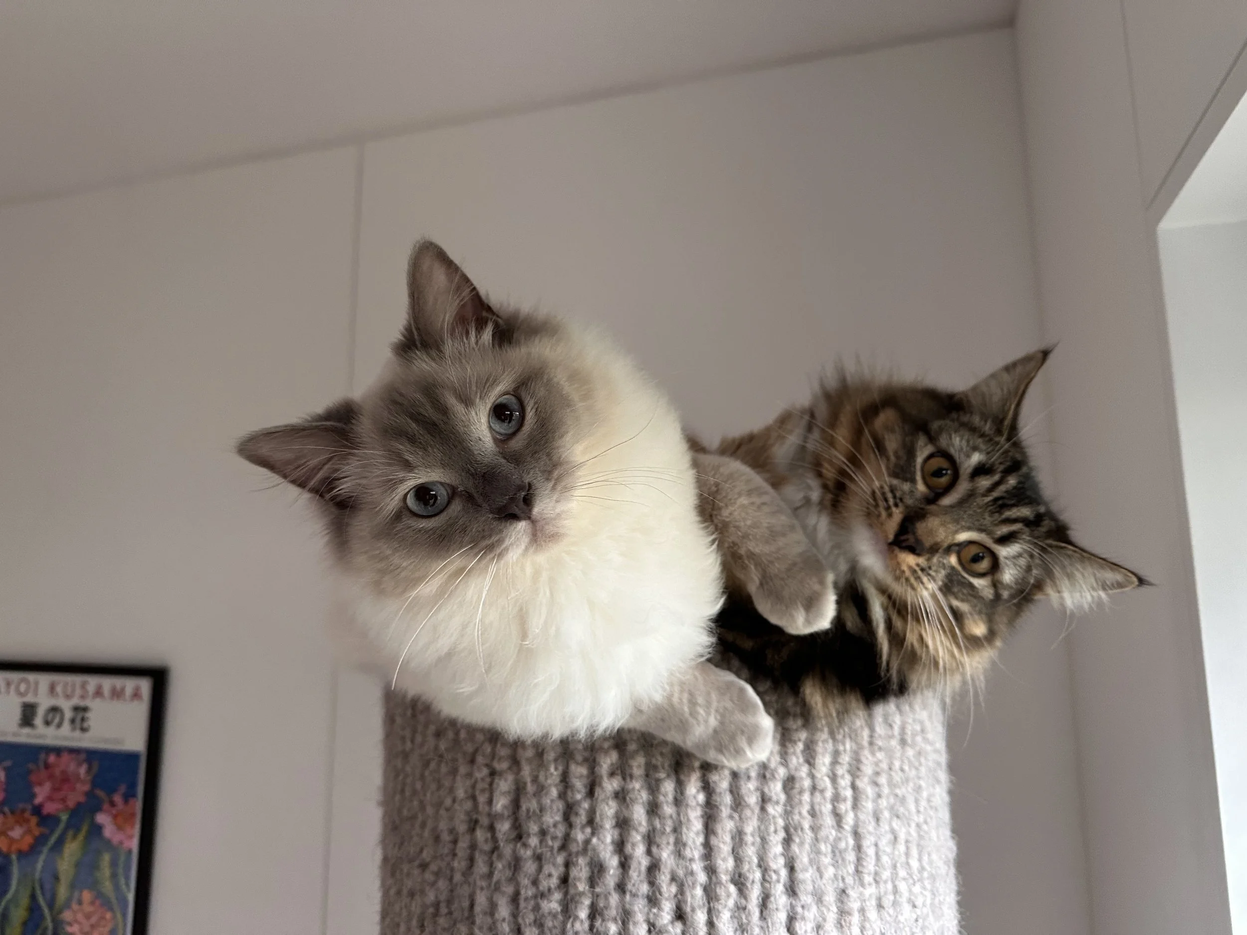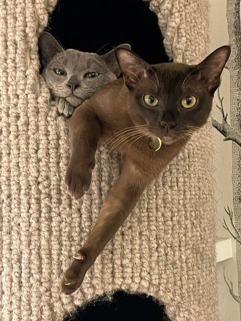 “Two happy Birmans who are adept at perching and just need to find their climbing paws!