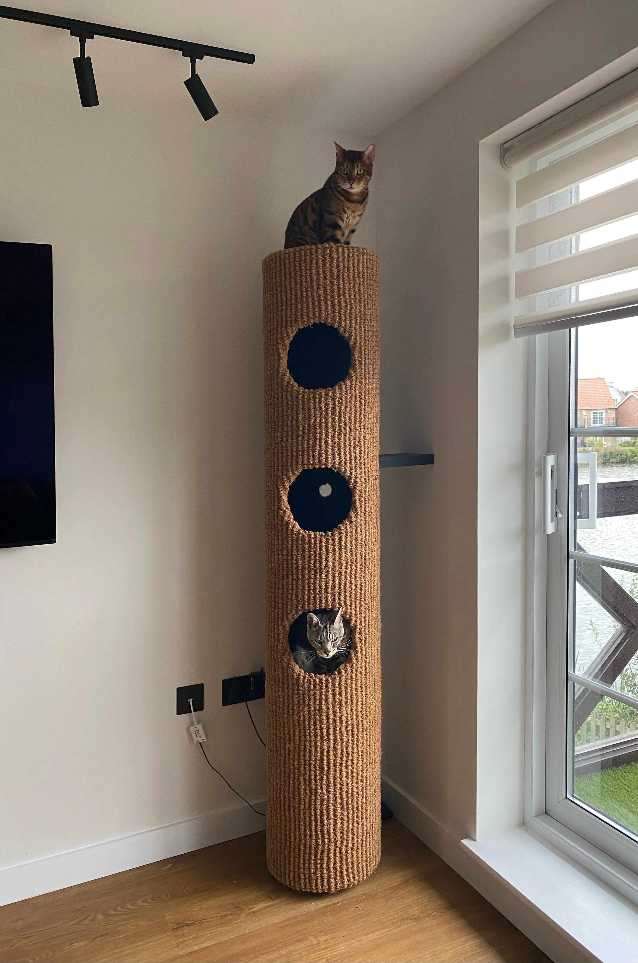 “Well...........it arrived around 10am and WOW!!! It is nothing short of stunning and a work of art, well-done you, you have seriously created every cat-lovers dream cat-play thing! I stood it up straight away, I couldn’t wait ;) Two of my cats were straight up it, one has not been off it....she is now laid on the floor panting as she has truly exerted herself ;) The other three are sleeping so have yet to discover it. What a fantastic piece of kit, it really is. After years of searching for the ideal cat climber I have found it - thanks to you and your company. The quality is second to none, it is perfect in every way! Thank you so much for such a pleasant and enjoyable purchase...I will be back for another pole sometime, you can count on that ;)”