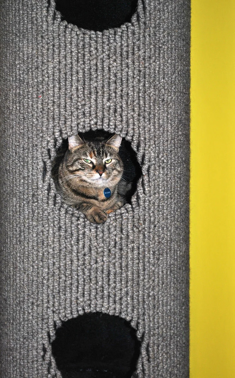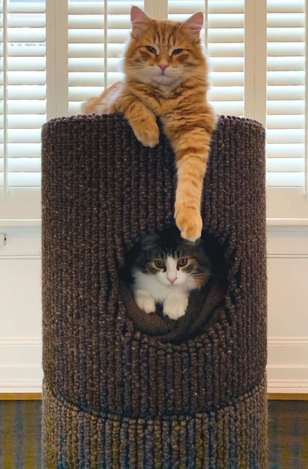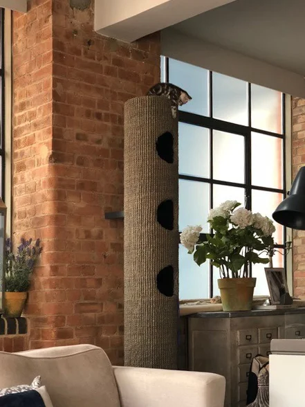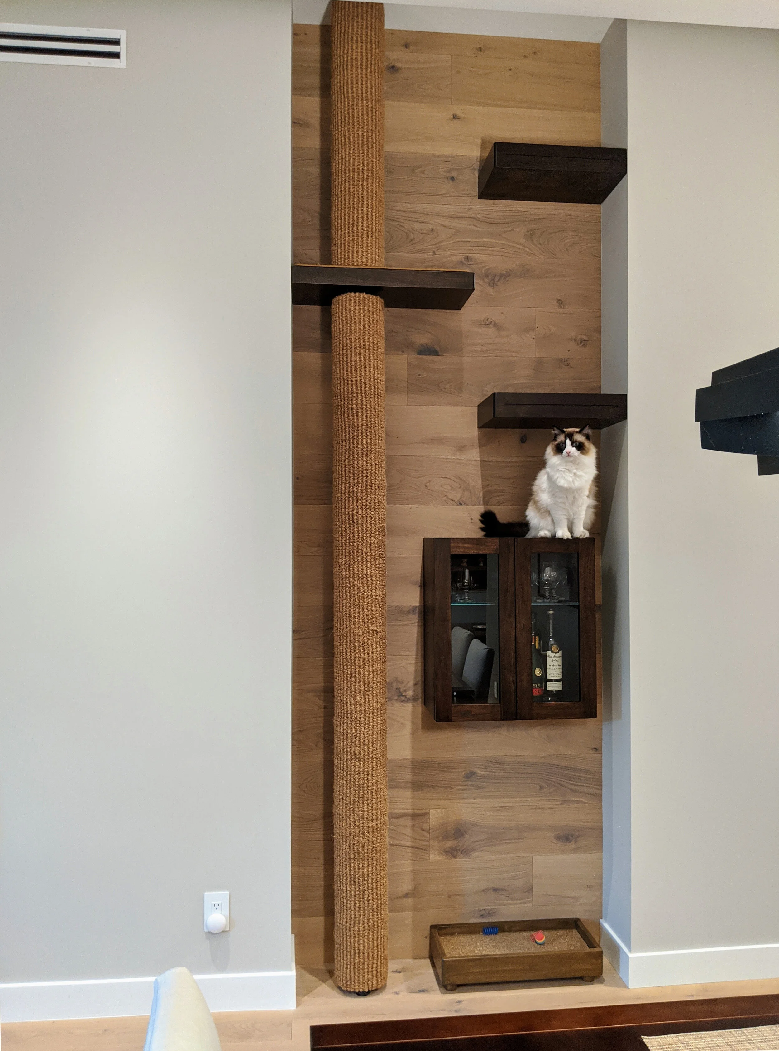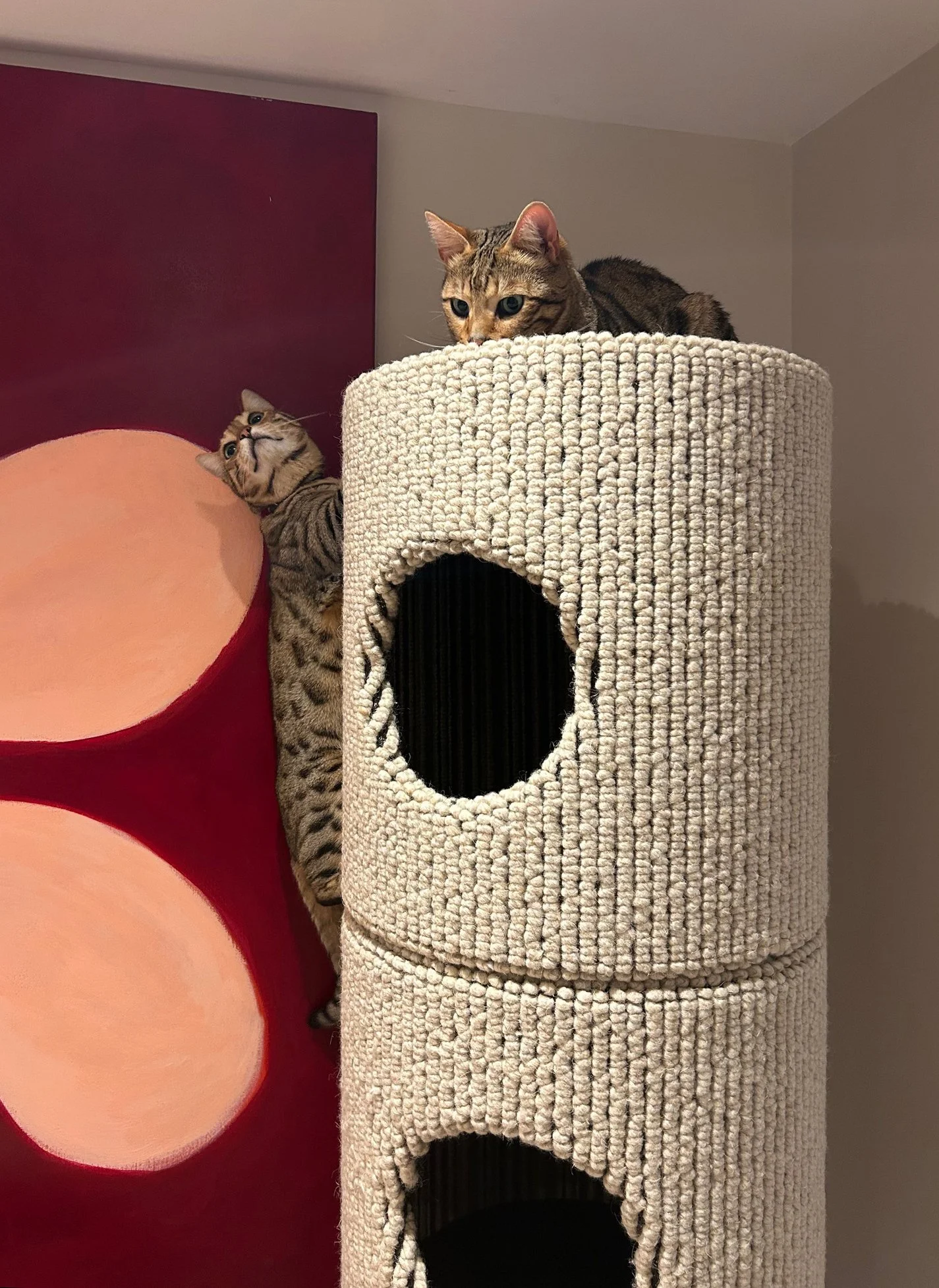 “We have the Fat Cat, Pole Cat, and TomCat. The moment the cats saw them after installation they immediately ran up them. Amazing. We had to teach the kittens to climb down which took only two tries! Tilda is happy to jump down through the internal hole and then out onto the FatCat. The versatility is great. We literally searched the world to find bespoke cat furniture that was not junky looking as we had just completed building a custom home. You guys make the best cat furniture In The World! Keep up the great work!!”