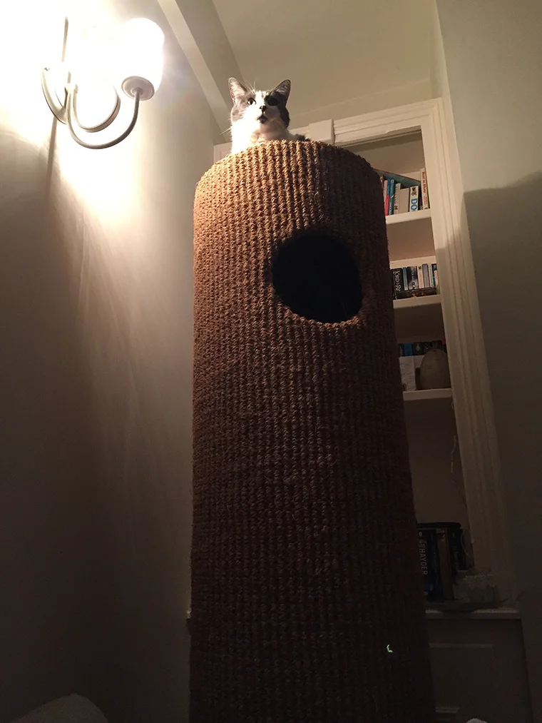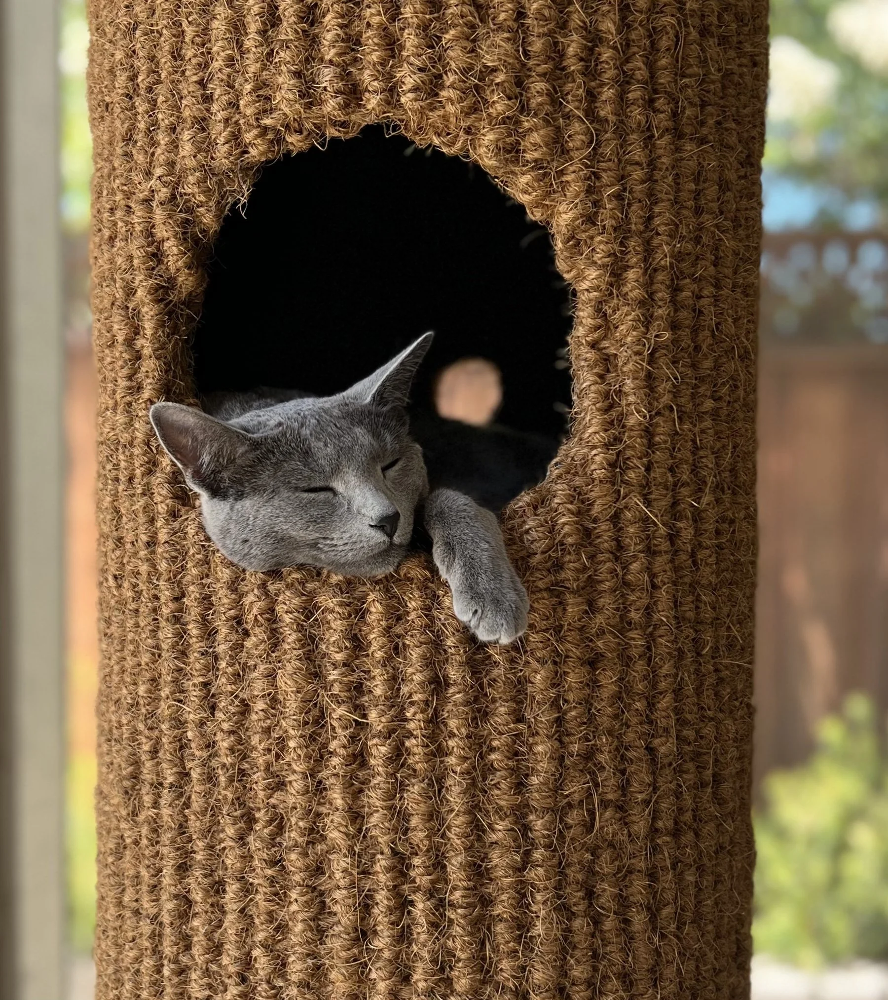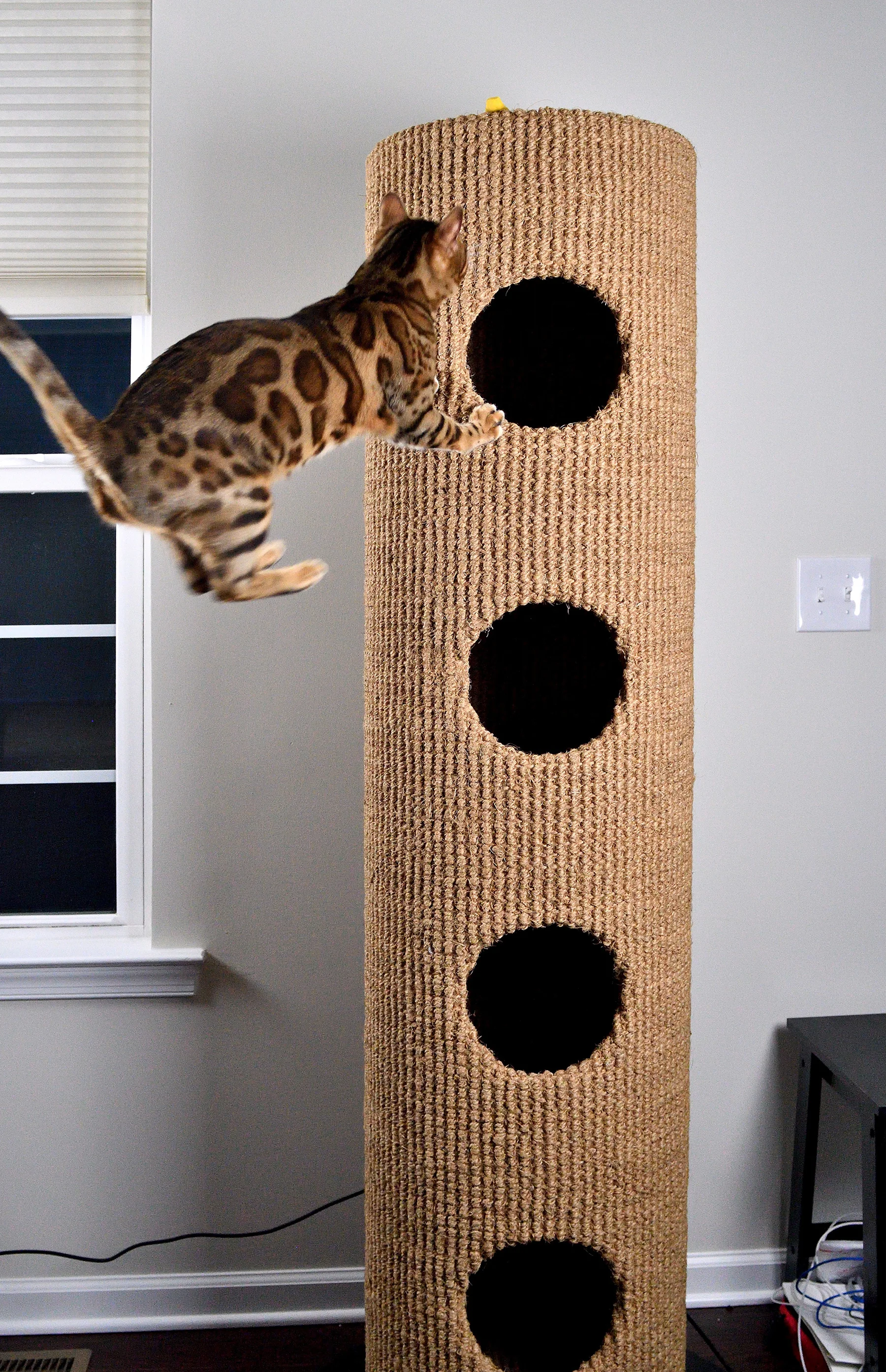 “My son Remy and I installed it yesterday afternoon after the parts arrived. There is an outdoor fireplace and couches next to the tomcat. My wife and I sat on the couches all evening with blankets and the fireplace on and watched the cats play on the tower. Waaaayyy better than television!”